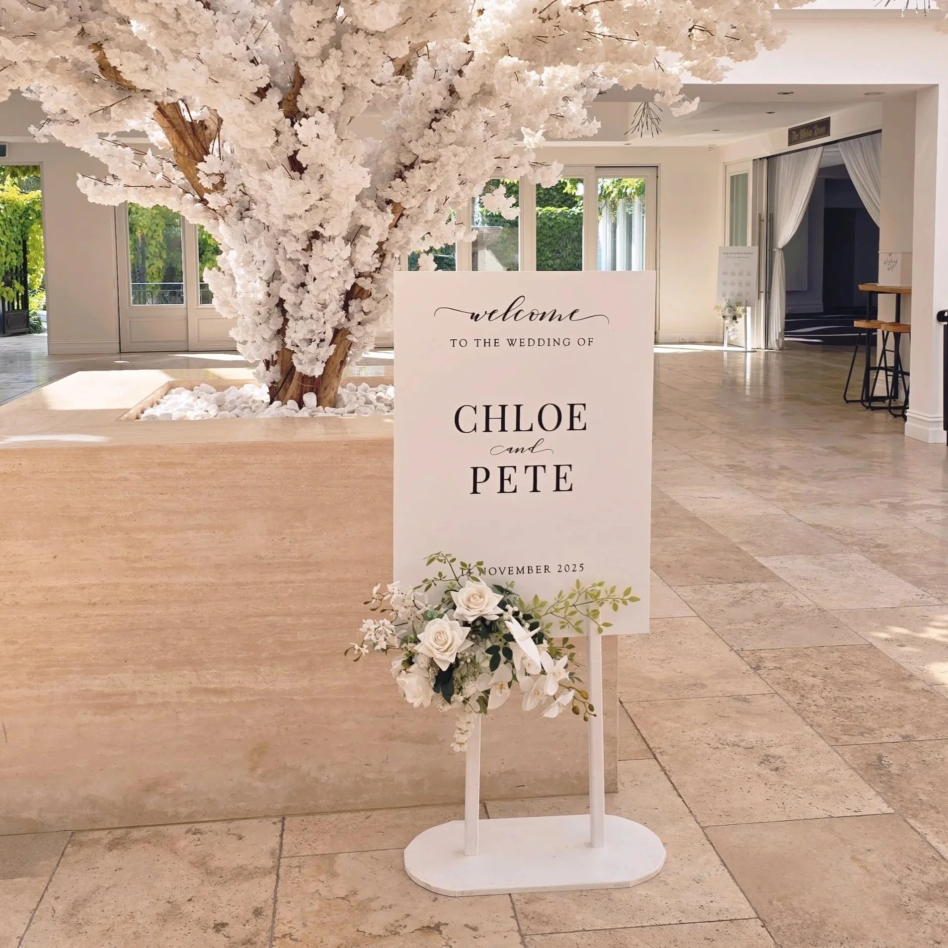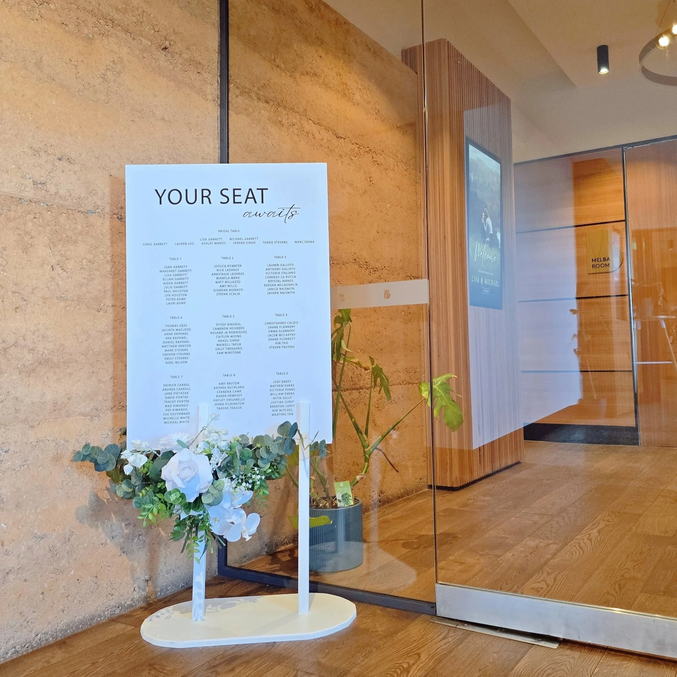Free Standing A0 Seating Chart and A1 Welcome Sign With Flowers and LED Candles